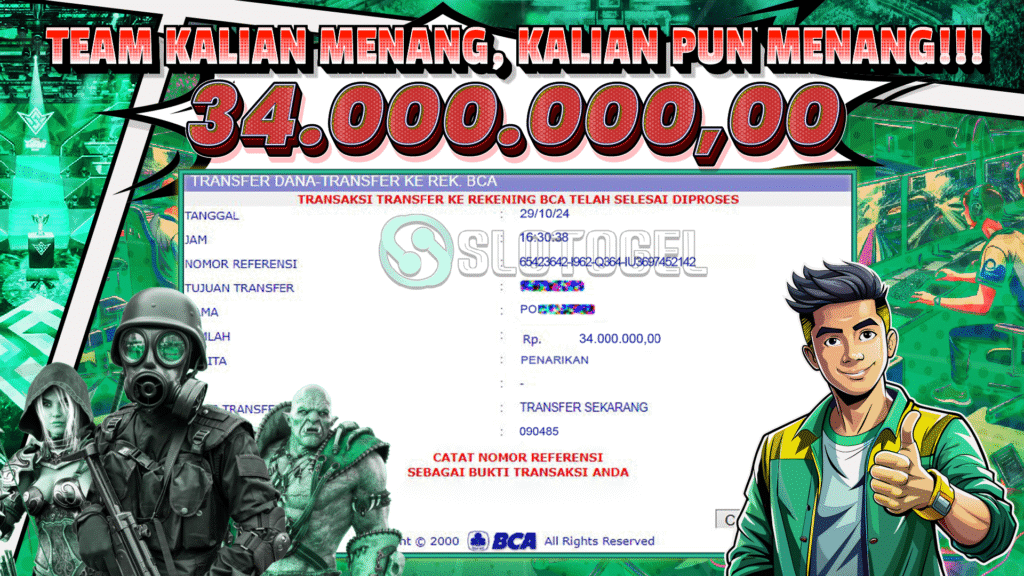 SLOTOGEL mengucapkan selamat kepada user id : LAUD*** yang telah berhasil mendapatkan jackpot E-SPORT pada bettingan VALORANT SLOTOGEL. Kemenangan sebesar Rp 34.000.000,-. telah dibayarkan LUNAS oleh pihak slotogel kepada pemilik user id setelah yang bersangkutan mengisi formulir withdraw. Proses pencairan dana berlangsung sangat cepat hanya dalam waktu 2-5 menit sudah berada dalam rekening pemilik user id. Bukti transfer yang dapat anda lihat adalah bukti SAH / VALID yang langsung didapatkan melalui bukti transaksi dari Bank yang digunakan untuk pengiriman dana pada rekening pemilik user id. Terima kasih kami sampaikan kepada para pengguna setia SLOTOGEL yang telah menggunakan situs kami, sebagai Bandar Terpercaya yang pastinya membayar semua kemenangan member hingga lunas. Apakah SLOTOGEL PENIPU ? Reputasi “SLOTOGEL TERPERCAYA” sudah sangat melekat. puluhan hingga ratusan ribu pengguna setia SLOTOGEL tetap menggunakan situs terbesar dan terbaik di Indonesia ini. Hapus rasa was-was dan khawatir anda, karena berapapun kemenangan anda PASTI dibayarkan hingga lunas.
